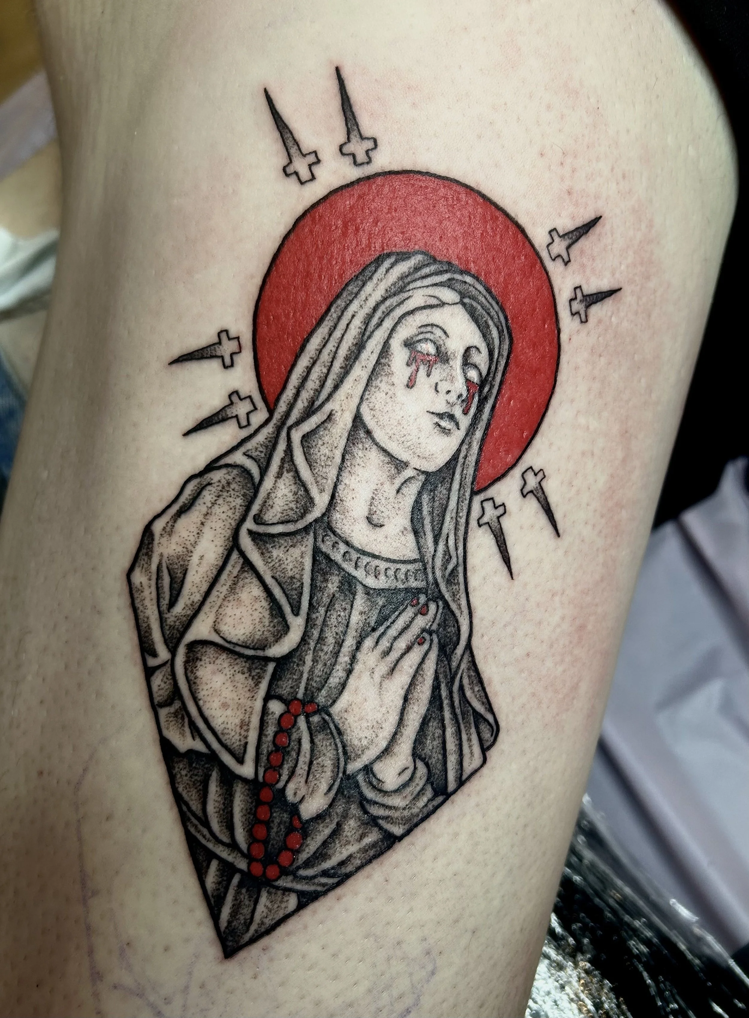 Mik began her work as an apprentice early in 2022 at a fast-paced shop in Dormont, where she quickly honed her technical skills and became a full time tattoo artist. After working in such a fast-paced environment, she decided to slow down and focus on finding her voice as an artist. Before tattooing, Mik graduated from MU with a degree in 3-dimensional art, where she learned woodworking and welding. Mik is passionate about what she does, and loves working with her clients to make their ideas come to life. While she accepts all types of work, Mik particularly enjoys doing anime pieces, horror themed work, mythical, whimsical, and witchy designs.